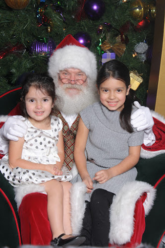 Most of this month has been spend obsessing about Christmas (of course). You both wrote letters to Santa Claus to tell him what you wanted, and when we went to visit him, both of you sat on his lap without incident. For Rachel, this wasn't a big deal. You've been sitting on Santa's lap since you were 6 months old. Emily, though...this was the first time you wanted to have anything to do with it. Every previous year, we've had to hold you while Rachel sat on Santa's lap, so this is a huge step forward for you.